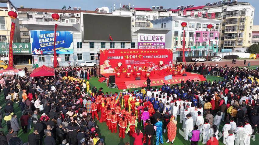 花灯璀璨映暖元宵烟火,脚步铿锵踏响体育春潮。3月3日,2026年湖北省“体育闹元宵”分会场主题活动在广水市燃动开启。众人齐聚一堂,用跃动的脚步与挥洒的汗水点燃热情,在欢声笑语与舌尖寻味间,共同开启了一场集民俗、竞技、非遗、美食于一体的“元宵奇妙游”。