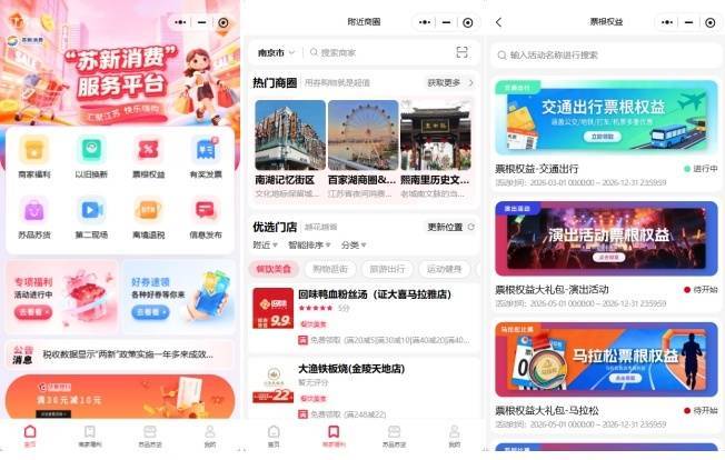 当前,消费者只要搜索进入“苏新消费服务平台”小程序,即可根据自身需求进入八大功能区相对应的服务板块,轻松享受政府补贴、银行优惠、商户让利等多重福利,实现消费体验与获得感的双重提升。